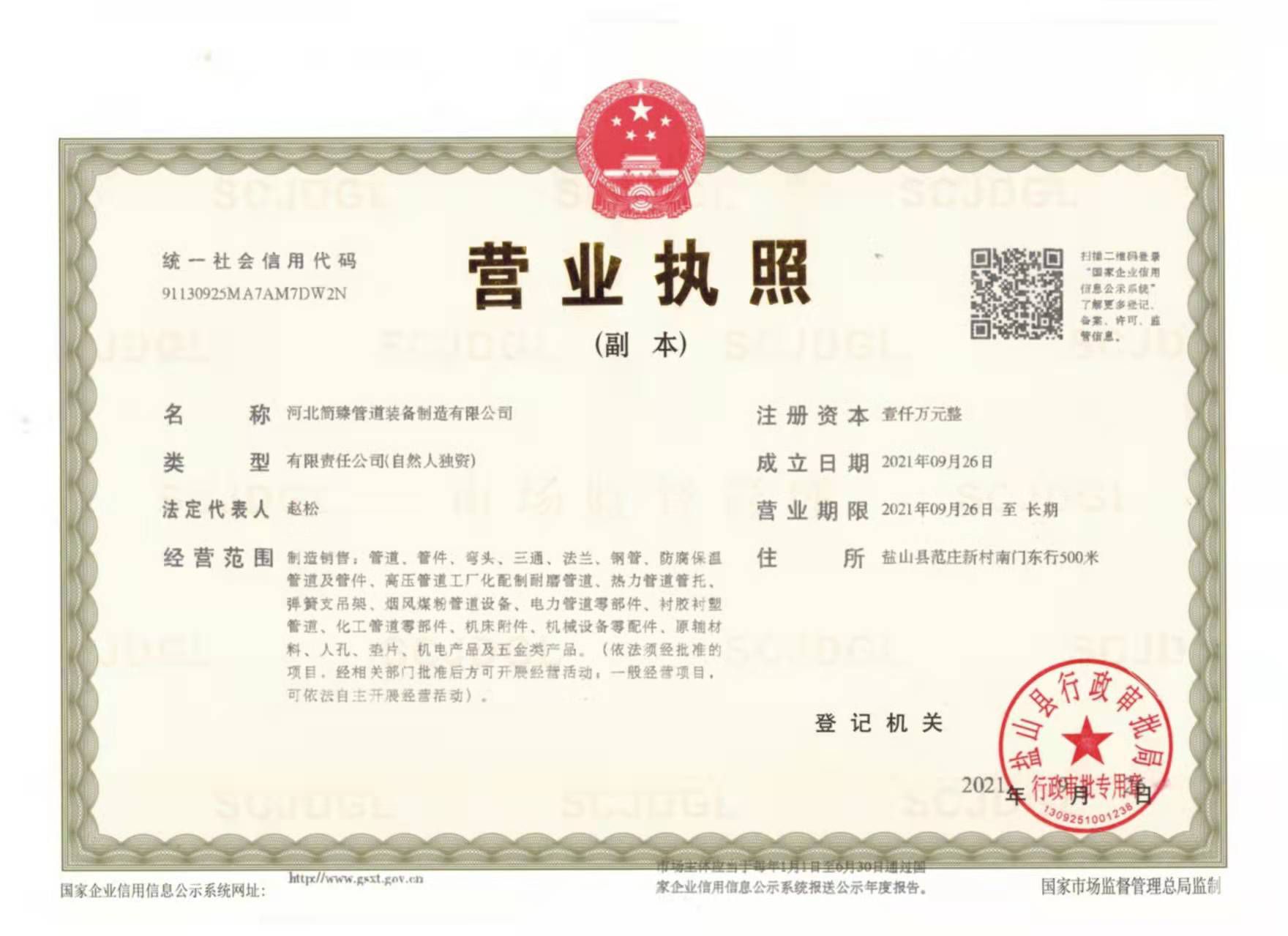 通过对新业态的前瞻性布局,紧扣国家能源结构调整方向,河北简臻管道装备制造有限公司以高标准获取优质资源。